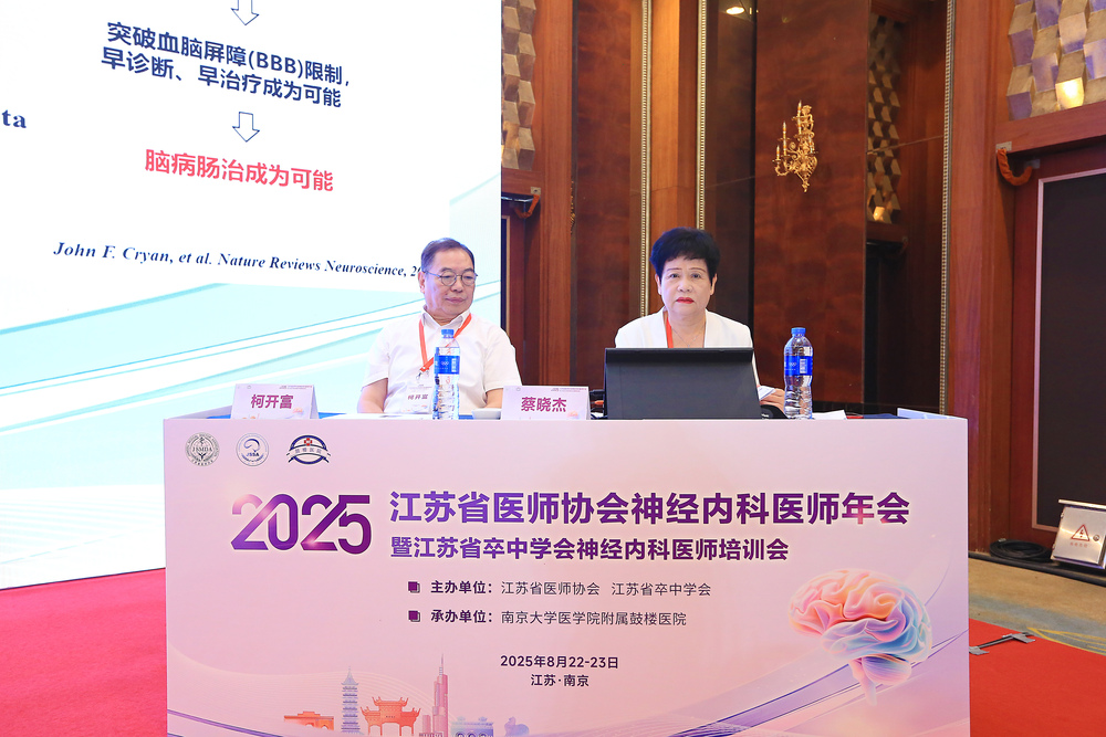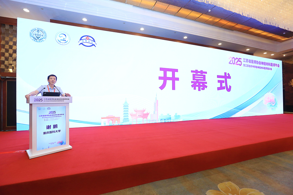 2025江苏省医师协会神经内科医师分会年会暨江苏省卒中学会神经内科医师培训会顺利召开发表时间:2025-08-26 10:06 由江苏省医师协会和江苏省卒中学会共同主办的“2025江苏省医师协会神经内科医师分会年会暨江苏省卒中学会神经内科医师培训会”于 8月23日上午8:30准时开始。江苏省医师协会神经内科医师分会会长、江苏省卒中学会理事长、南京鼓楼医院神经内科主任徐运教授担任开幕式主持人。他首先邀请中国医师协会神经内科分会前任会长、重庆医科大学谢鹏校长致辞,随后代表南京鼓楼医院及江苏省医师协会神经内科医师分会发表欢迎辞,为全天的学术交流奠定了良好开端。