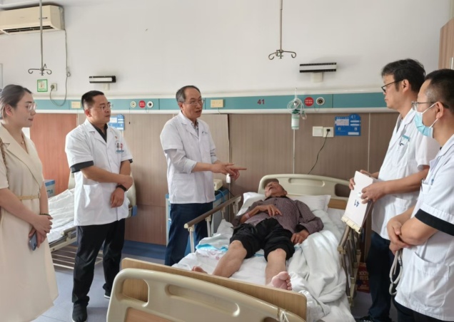 授课结束后,专家团队还深入内科病房开展教学查房,对一位81岁高龄的脑卒中患者,从急诊救治、康复治疗、营养支持等多个维度,制定了个体化的治疗方案。专家们还就患者护理、家庭照护、长期康复等实际问题,与医护人员和家属进行了深入交流。