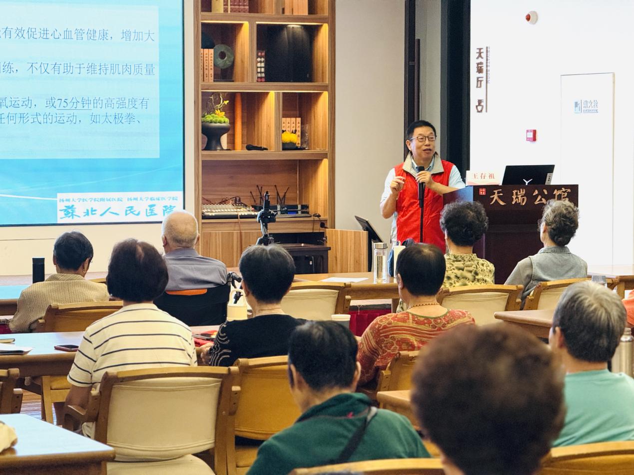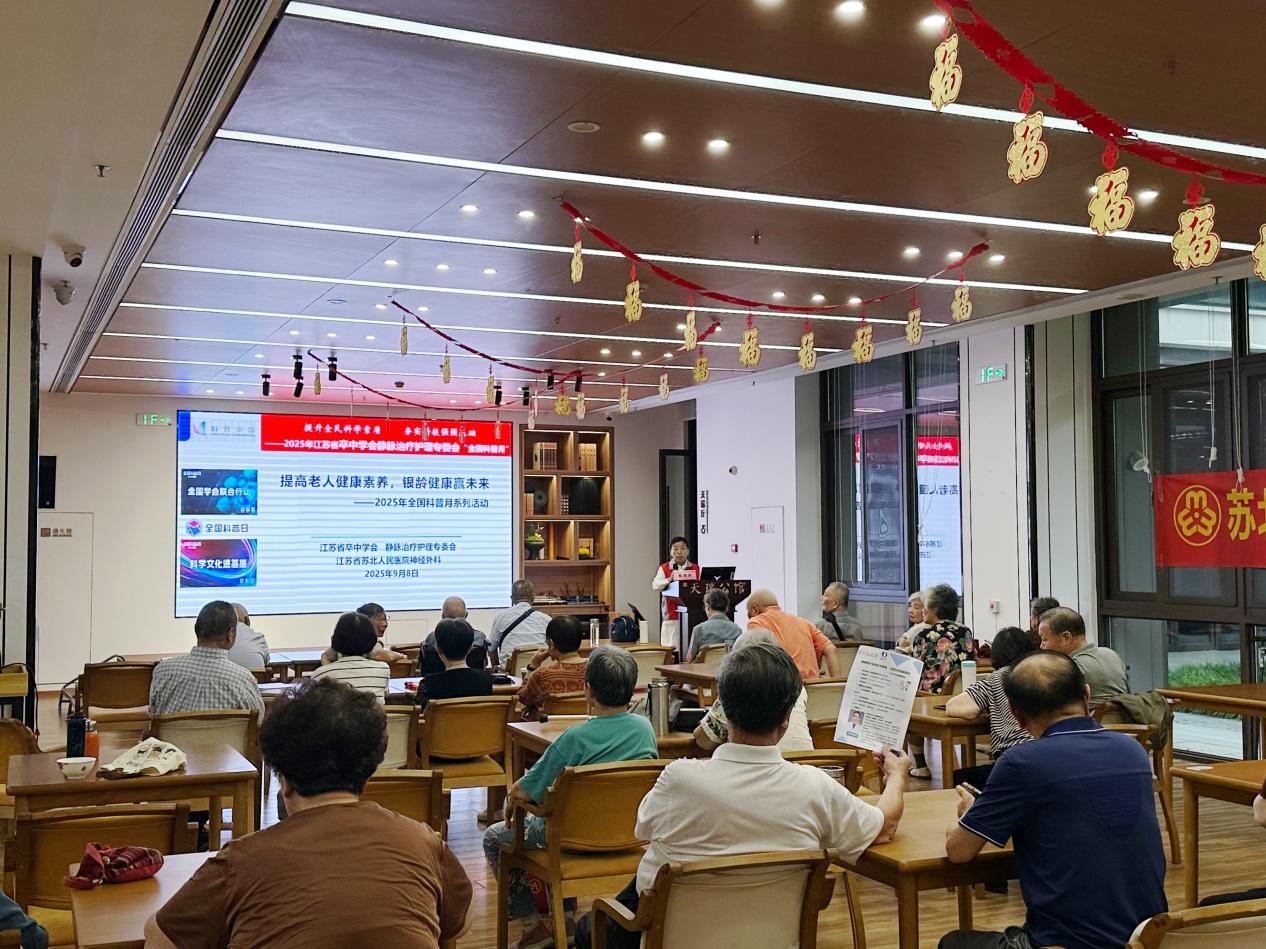 幸福的“头”等大事 专家带您科学护脑——2025年“全国科普月”活动发表时间:2025-09-23 14:26 为深入贯彻落实习近平总书记关于科技创新、科学普及和科学素质建设的重要论述,贯彻落实全国科技大会精神和《中华人民共和国科学技术普及法》,积极响应2025年全国科普月“提升全民科学素质 夯实科技强国基础”的号召,9月8日江苏省卒中学会静脉治疗护理专委会联合苏北人民医院神经外科党支部组织医护专家团队,走进广陵区天瑞府康养社区,成功举办了一场以“守护大脑健康、乐享幸福晚年”为主题的大型健康科普讲座与义诊活动。此次活动将前沿的医学知识转化为通俗易懂的“健康礼包”,送到了老年居民的家门口,为他们带来了实实在在的温暖与关怀。